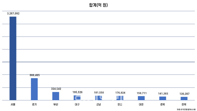 예금은행 지역별 수신(말잔) 합계 (그래픽=도시와경제)