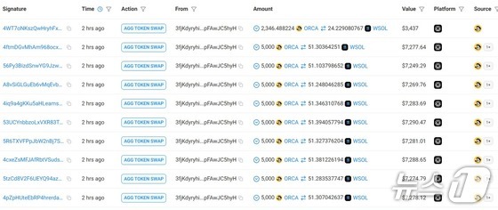 27일 뉴스1이 솔라나 블록체인 탐색기 '솔스캔(SOLscan)'으로 업비트가 공개한 해커 지갑 주소를 분석한 결과, 해커는 탈중앙화거래소(DEX) 레이디움(Raydium), 메테오라(Meteora), 에퀴퍼(Aquifer) 등을 이용해 탈취한 가상자산을 모두 랩트솔라나(WSOL)로 바꾸고 있다.