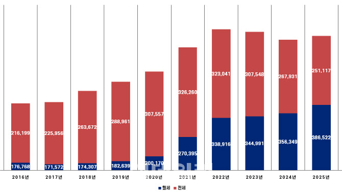 서울시 전월세 10년 거래 추이 (그래픽=도시와경제)