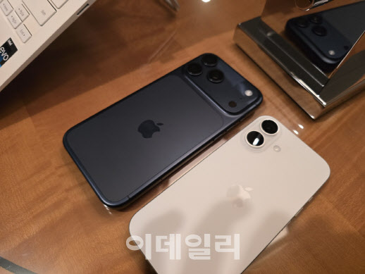 (좌)아이폰17 프로맥스(딥블루)와 아이폰16 일반형 모델 후면 비교(사진=윤정훈 기자)