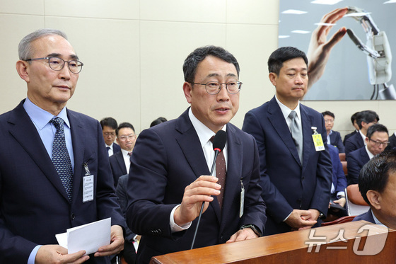 김영섭 KT 대표(왼쪽부터), 유영상 SK텔레콤 대표, 홍범식 LG유플러스 대표가 21일 서울 여의도 국회 과학기술정보방송통신위원회에서 열린 정보통신산업진흥원 등에 대한 국정감사에서 의원 질의에 답변하고 있다. 2025.10.21/뉴스1 © News1 신웅수 기자