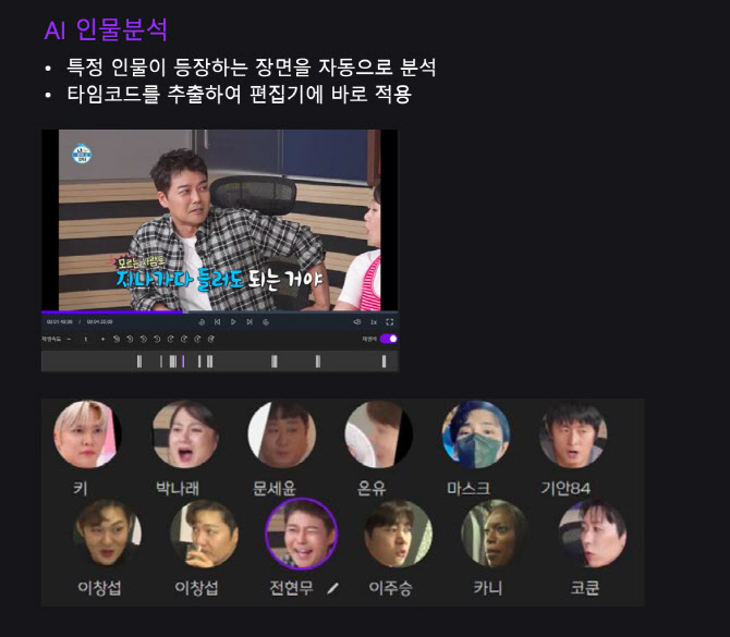 특정인물이 등장하는 장면을 AI가 자동으로 분석해주고 있다.(사진=네이버클라우드)