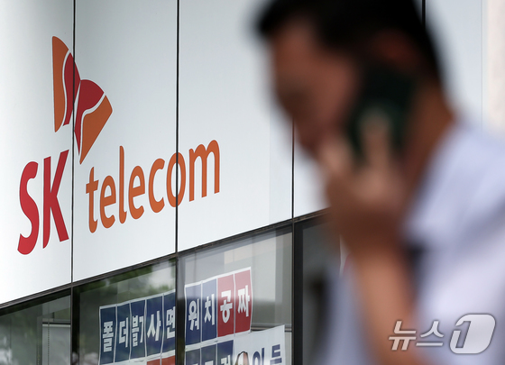 서울 도심의 SK텔레콤 대리점 앞에서 한 시민이 전화 통화를 하고 있다. 2025.8.28/뉴스1 © News1 박정호 기자