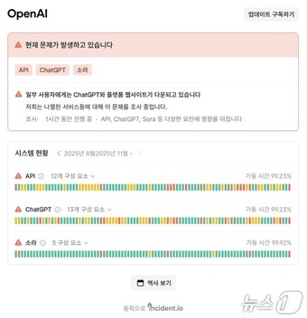 오픈AI 시스템 상태 페이지 갈무리