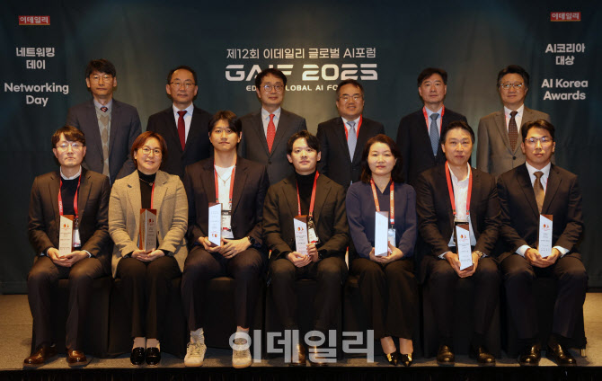 [이데일리 노진환 기자] 2025 이데일리 AI 코리아 대상 시상식이 18일 서울 더플라자 호텔에서 열렸다. 이익원(뒷줄 왼쪽 세 번째) 이데일리 대표와 내빈들, 각 부문 수상자들이 기념촬영을 하고 있다. 뒷줄 왼쪽부터 김경만 과학기술정보통신부 인공지능정책실장, 박동일 산업통상부 산업정책실장, 이익원 이데일리 대표, 양승현 한국인공지능산업협회장, 박용순 중소벤처기업부 중소기업정책실장, 이상구 심사위원장.앞줄 왼쪽부터 이진수 셀렉트스타 COO, 김득화 펀진 대표이사, 양정모 라이너 COS, 정진우 트웰브랩스 사업개발이사, 박정현 인터엑스 CIO, 박용훈 엘리스그룹 사업총괄, 신기영 플리토 CSO.