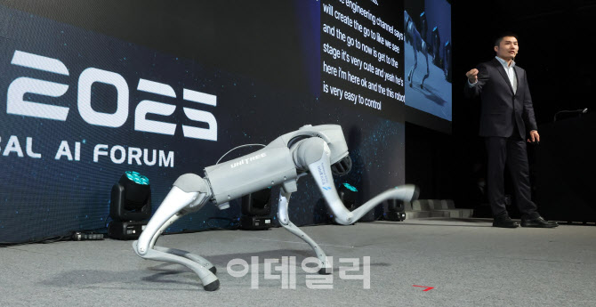 [이데일리 방인권 기자] 펠릭스 상 유니트리 로보틱스 선임이사가 19일 서울 중구 더플라자 호텔에서 열린 ‘이데일리 글로벌 AI포럼(GAIF 2025)’에서 ‘중국 빅테크의 AX전략과 확장’이란 주제로 기조연설을 하고 있다.