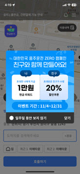 추천받은 친구가 처음으로 핸들대리 서비스를 이용하면 추천인에게 5000원이 지급되며, 이후 3회 이상 이용할 경우 추가로 5000원이 더해져 총 1만 원의 현금이 지급된다.