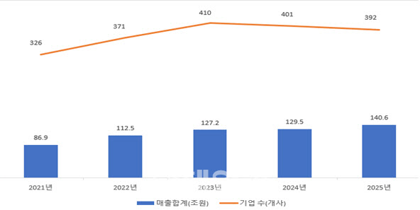 ‘5천억클럽’은 22개사로 매출액이 4.2% 증가한 14조9000억원을 기록했으며, ‘1천억클럽’은 122개사로 전년 대비 7개사 증가하며 매출액은 7.4% 성장한 26조8000억원을 달성했다.