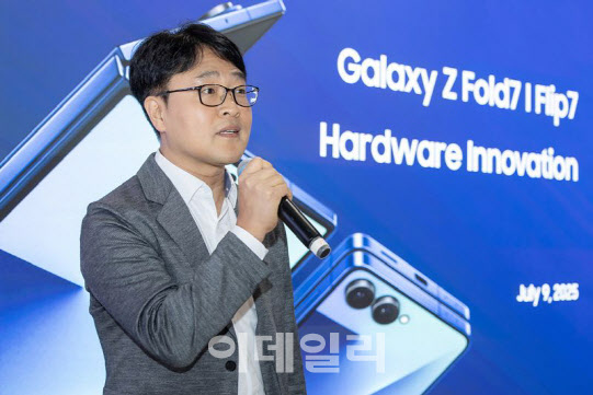 삼성전자 MX사업부 강민석 신임 부사장이 지난 7월 10일(현지시간) 미국 뉴욕에서 갤럭시 하드웨어 혁신에 대해 브리핑하고 있다(사진=삼성전자)