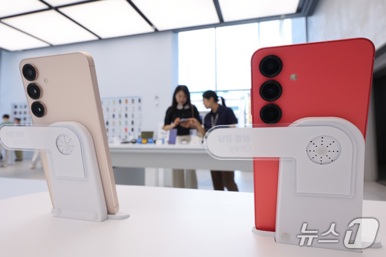 5일 서울 강남 삼성에서 고객들이 삼성전자 갤럭시 S25 시리즈를 살펴보고 있다. 2025.8.5/뉴스1 © News1 신웅수 기자