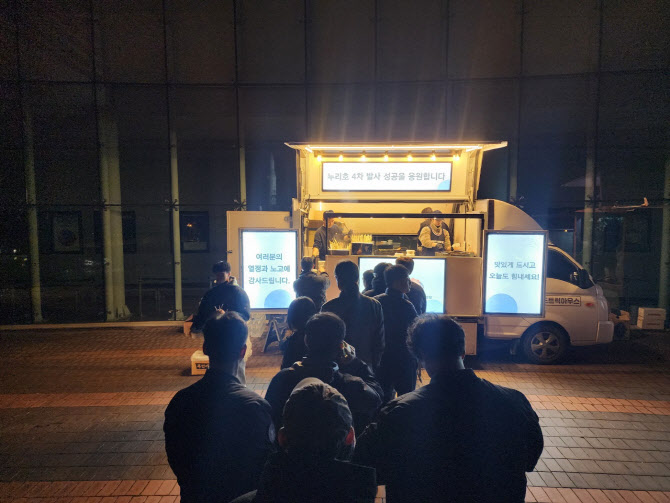 누리호 체계종합기업인 한화에어로스페이스는 나로우주센터 우주과학관 인근에 커피차를 동원해 야간 발사 속 업무를 수행하는 군·경 등을 지원했다. 저녁 추위속에도 커피 등 음료와 닭강정, 어묵이 제공돼 추위와 피로를 달랬다.