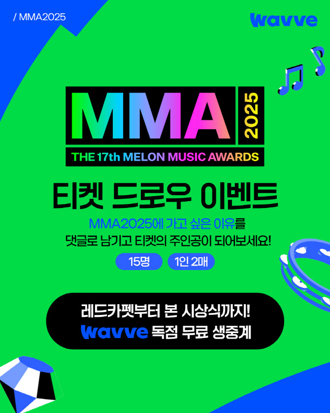 웨이브(Wavve)는 12월 20일 서울 고척 스카이돔에서 열리는 ‘The 17th Melon Music Awards, MMA2025’의 OTT 독점 중계권을 확보하고, 이날 오후 4시부터 레드카펫과 본식 1~3부를 실시간으로 무료 중계한다고 19일 밝혔다.