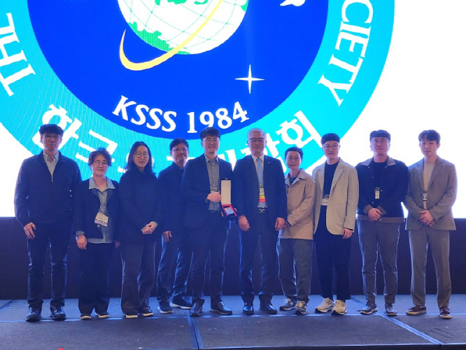 지난 10월 30일 제주 신화월드에서 아이옵스와 항우연 관계자들이 2025 한국우주과학회 국제협력상을 공동 수상하고 있다.(사진=아이옵스)