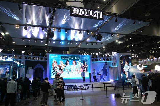 5일 오전 서브컬처 페스티벌 'AGF 2025'가 열리는 일산 킨텍스 제 1전시장 네오위즈 '브라운더스트2' 부스가 설치돼 있다. AGF 2025는 12월 5일부터 7일까지 일산 킨텍스에서 열린다.2025.12.5/뉴스1 © News1 김민재 기자