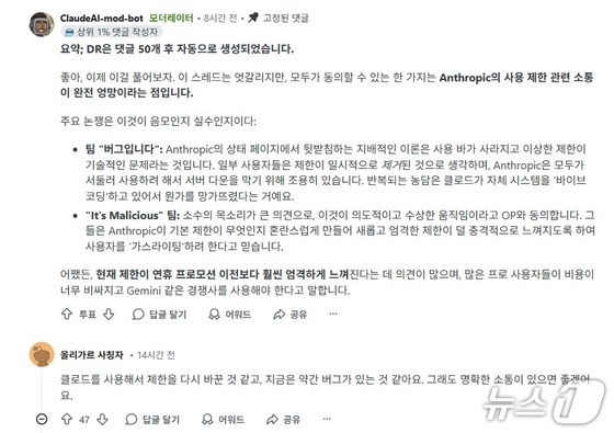 여기에 디스코드에 상주하는 앤트로픽 채널 관리자들이 비판 글을 삭제하고 있다는 주장까지 나오며 '클로드 사태'로 번지고 있다.