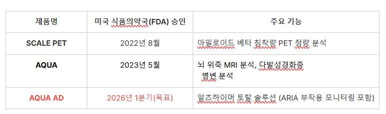 뉴로핏은 올해 1분기 미국 식품의약국(FDA) 510(k) 승인을 목표로 핵심 제품인 '뉴로핏 아쿠아 AD' 출시를 준비하고 있다. 아쿠아 AD는 자기공명영상(MRI)과 양전자 방출 단층촬영(PET) 영상을 종합 분석하는 솔루션으로 알츠하이머 치료제 처방에 필요하다. 아쿠아 AD가 FDA 승인을 받으면 미국 시장 공략에 결정적인 전기가 마련될 전망이다.