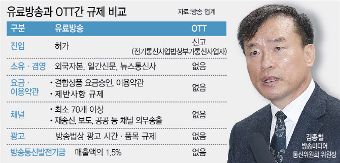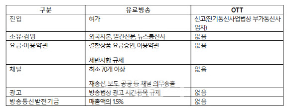 유료방송과 OTT 규제 비교(자료=방송업계)