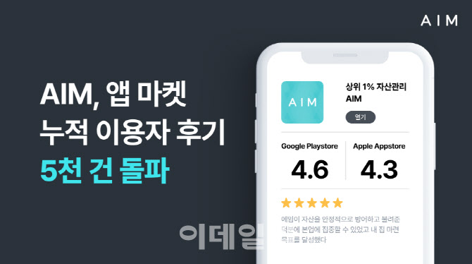 이지혜 에임 대표는 “5000 건의 이용자 후기는 지난 10년간 에임이 일관되게 강조해온 ‘긴 호흡의 자산관리’ 철학이 시장에서 유효했음을 보여주는 데이터”라며 “이용자들이 남긴 한 줄 한 줄의 피드백이 여기까지 올 수 있었던 가장 큰 원동력”이라고 말했다.