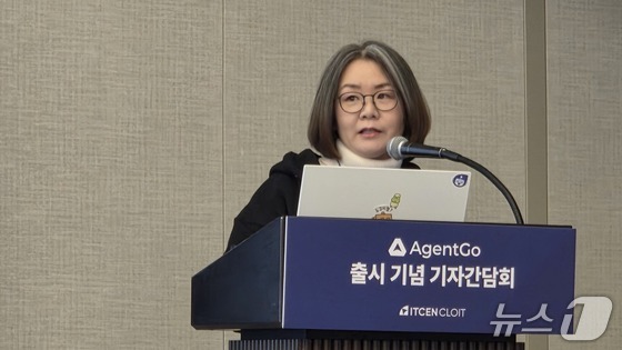 유은빛 아이티센글로벌 에이전트고 프로덕트 오너 이사가 서울 강남구 그랜드 인터컨티넨탈 서울 파르나스 호텔에서 열린 에이전트고 출시 기자간담회에서 발언하고 있다. 2026.1.27 뉴스1 © News1 김민석 기자