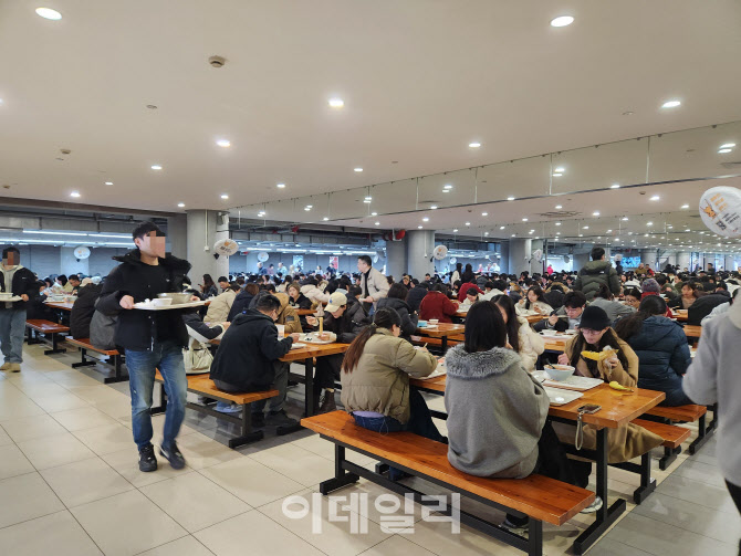 27일 중국 항저우 빈장 지구에 있는 넷이즈게임즈 항저우 캠퍼스 직원 식당에서 직원들이 식사를 하고 있다.(사진=안유리 기자)