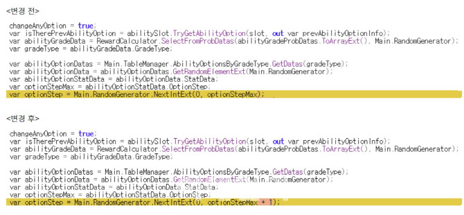 넥슨 측은 문제가 된 코드를 일부 공개하며 의도적인 조작은 아니며, “개발 과정에서 휴먼에러로 발생한 오류”라고 해명했다. 게임 코드 속 계산식에서 최대 수치 등장 확률이 ‘이하’로 설정돼야 하나, ‘미만’으로 잘못 설정이 돼 정상적으로 작동하지 않았다는 설명이다.