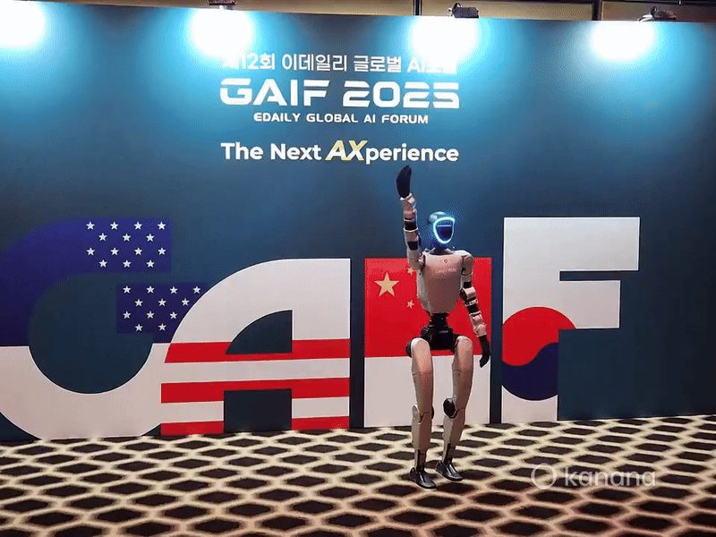 카나나 템플릿에서 차렷 자세의 휴머노이드 사진을 올리자 2~3초간 움직이는 짧은 영상으로 변신해 팔을 움직이고 있다.