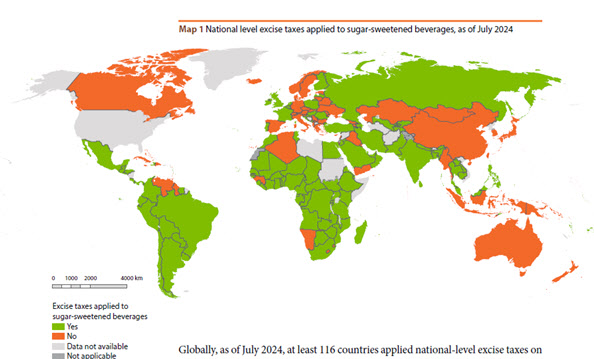 국가별 첨가당 음료수 세금 부과 현황(사진=WHO, 서울대학교 건강문화사업단)