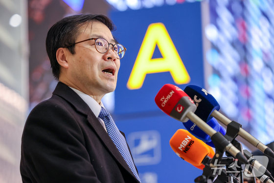 상호관세 25% 인상 예고 협의를 위해 급히 미국을 찾아 일정을 마친 여한구 산업통상부 통상교섭본부장이 5일 인천국제공항 2터미널을 통해 귀국, 취재진 질문에 답하고 있다. 2026.2.5/뉴스1 © News1 안은나 기자