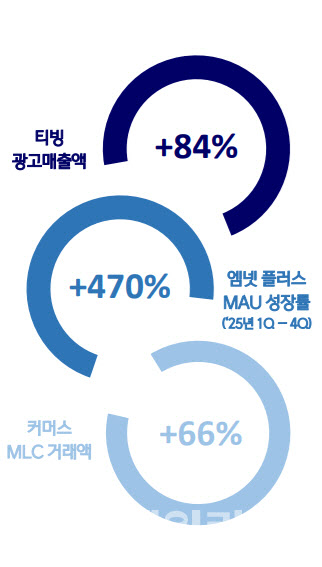 특히 지난 11월 홍콩에서 개최된 ‘2025 MAMA AWARDS’는 역대 최대 매출과 이익을 기록했고, 전 세계 250여 개 지역에서 서비스 중인 엠넷플러스는 2025년 연초 대비 연말 기준 월간활성이용자(MAU)가 약 470%, 일간활성이용자(DAU)는 전년 대비 약 3배 성장하며 사업 경쟁력이 강화됐다.