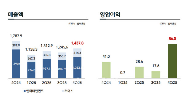 커머스 부문은 연간 매출 1조 5,180억 원, 영업이익 958억 원을 기록하며 각각 전년 대비 4.6%, 15.2% 성장했다.