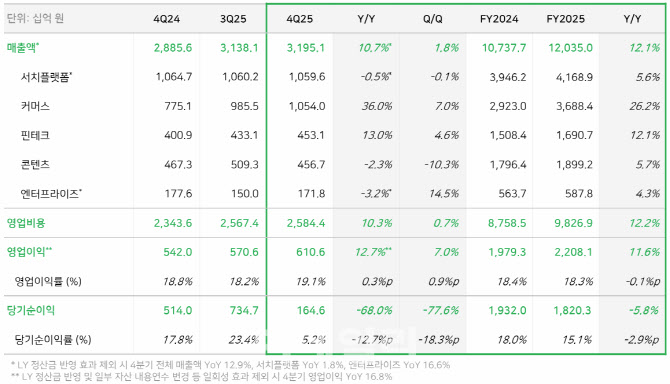 네이버 2025년 4분기 서치플랫폼 및 커머스 실적(자료=네이버)