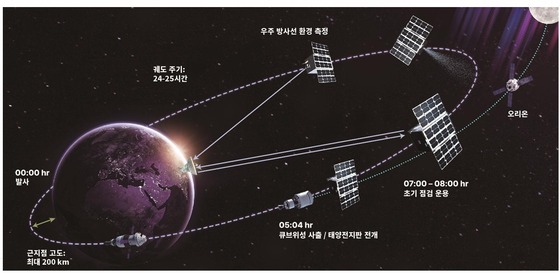2단계 미션이 더욱 특별한 이유는 한국의 과학임무 소형 위성 'K-라드큐브'가 동행하기 때문이다. 한국천문연구원이 개발한 'K-라드큐브'는 지구를 둘러싼 밴앨런 복사대에서 우주 방사선을 고도별로 정밀 측정하는 임무를 수행하게 된다.