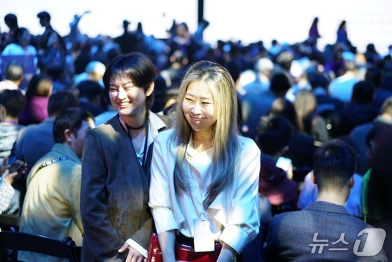 '케이팝 데몬 헌터스'의 감독 매기 강이 25일(현시시간) '갤럭시 언팩 2026' 행사장에서 관객들과 기념 촬영을 하고 있다. 2026.2.25 © 뉴스1 이기범 기자
