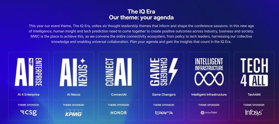MWC26의 주제는 'IQ 시대'(The IQ Era)다. 초연결 네트워크 위에 AI를 결합, 산업 전반의 지능화를 가속하는 새로운 디지털 전환의 시대를 의미한다.