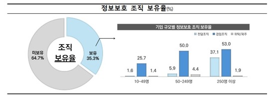 정보보호 업무를 수행하는 기업(79.9%) 중 '정보보호 조직을 보유하고 있다'고 응답한 비율은 35.3%다.
