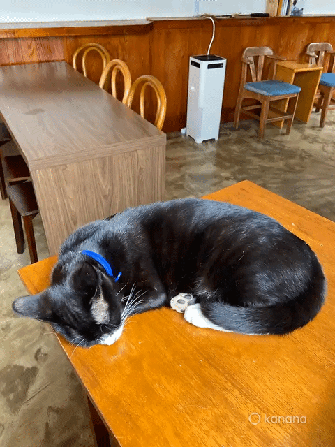 카카오톡 '카나나 템플릿'을 활용해 고양이 사진 1장을 움직이는 영상으로 변환한 결과. 우측 하단 AI로 생성했음을 알리는 '카나나'(kanana) 워터마크가 표시돼 있다. (카나나 템플릿 갈무리)