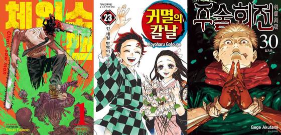 네이버웹툰 단행본 플랫폼 네이버시리즈가 '체인소 맨'과 '귀멸의 칼날', '주술회전' 단행본을 10% 할인한다고 17일 밝혔다.