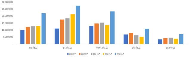 실제로 교육부의 ‘2023년 대학혁신지원사업(대학일반지원사업) 기본계획’에 따르면 당시 대학 일반지원 예산은 고등교육특별회계 신설로 전년 대비 약 5200억 원 증액됐다. 선문대는 “국고 유치 금액이 선문대만 2배 가까이 증가한 것이 아니라 규모가 비슷한 인근 대학들도 모두 증가했다”며 “이는 교육부의 재정지원 예산 증액 정책에 따른 결과로 판단된다”고 했다.