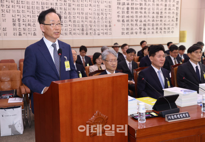 김대웅 서울고등법원 법원장이 20일 오전 서울 여의도 국회에서 열린 법제사법위원회의 서울고등법원 등에 대한 국정감사에 출석, 업무보고를 하고 있다. (사진=이데일리 노진환 기자)