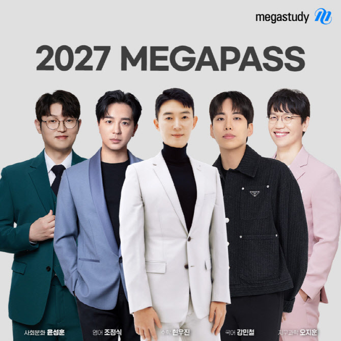 ‘2027 메가패스’는 예비 고1·고2·고3수험생을 위한 수능·내신 전 과목 프리패스 인강으로 수학 현우진, 국어 강민철, 영어 조정식, 사회문화 윤성훈, 지구과학 오지훈 등 메가스터디 소속 전 과목 1타 강사들의 강좌뿐만 아니라 학년별로 수강 기간 동안 모든 강사의 강좌를 무제한 수강할 수 있다.