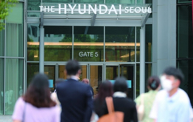 서울 영등포구 여의도에 위치한 ‘더현대서울’ 앞으로 시민들이 지나다니고 있다. (사진=연합뉴스)