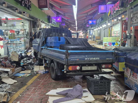13일 오전 10시 55분쯤 경기 부천 오정구 원종동 제일시장에서 A 씨가 몰던 1톤 트럭이 돌진하는 사고가 발생했다. (독자 제공. 재판매 및 DB금지) 2025.11.13/뉴스1