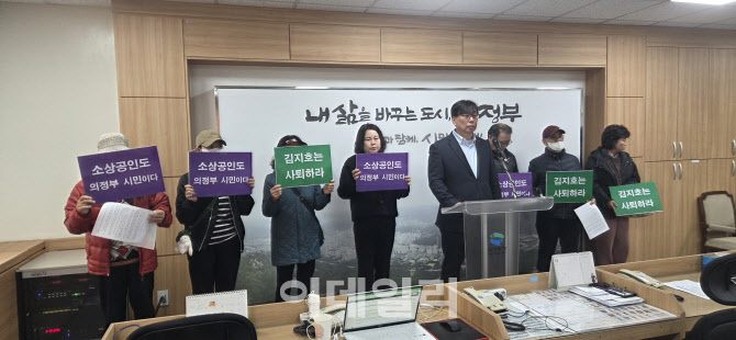 경기 의정부시소상공인연합회와 금오먹자골목상인회는 13일 오전 시청 브리핑룸에서 기자회견을 열고 “소상공인의 존재를 부정하고 상인 공동체를 모욕한 망언을 한 김지호 의정부시의원은 사퇴해야 한다”고 밝혔다.