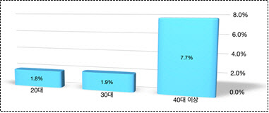 합병증 발생에서도 유의미한 차이를 보였다. 대상군 831명 중 22명(2.6%)이 합병증을 보였다. 20대 10명(1.8%), 30대 3명(1.9%)에 비해 40대 이상은 9명(7.7%)로 가장 높았다.