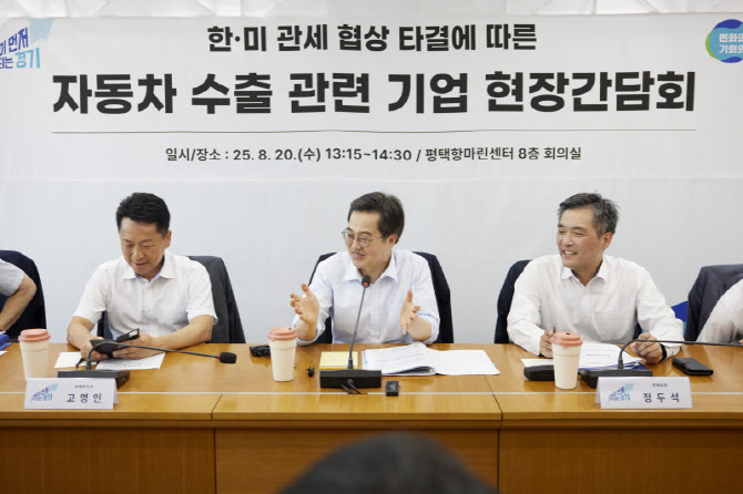 김동연 경기도지사가 지난 8월 20일 오후 평택항마린센터에서 열린 자동차 수출기업 관계자 현장간담회에서 애로사항 청취 및 후속조치 논의를 하고 있다.(사진=경기도)