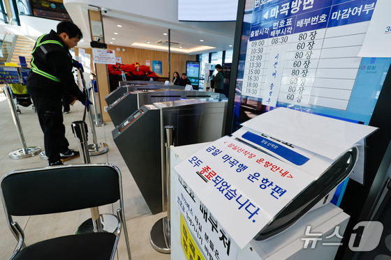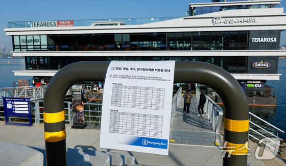 16일 서울 송파구 한강버스 잠실선착장에 운항 종료 안내문이 붙어 있다. 2025.11.16/뉴스1 © News1 안은나 기자