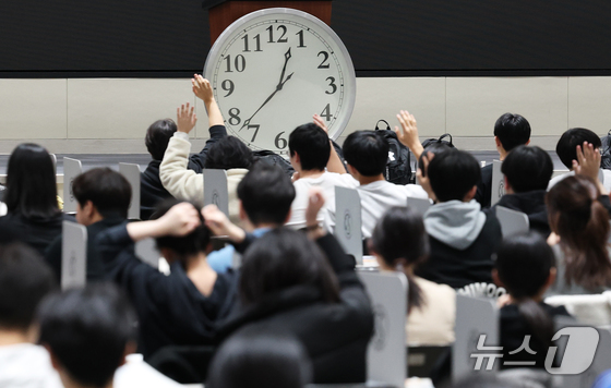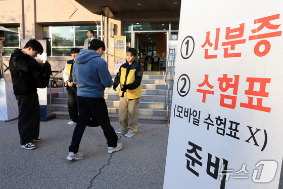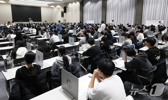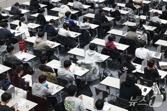 수능 후 첫 주말인 16일 서울 종로구 성균관대에서 열린 2026학년도 수시모집 논술시험(수리형)에서 수험생들이 시험을 준비하고 있다. 2025.11.16/뉴스1 © News1 오대일 기자
