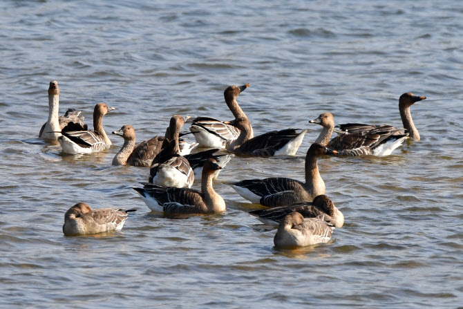9일 경북 경주시 강동면 형산강에 모여든 겨울새인 큰기러기들이 주변을 살피고 있다. (사진=뉴스1)