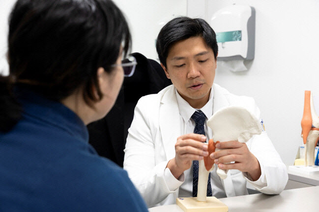 연세사랑병원 정재현 고관절관절내시경센터장이 고관절 질환에 대해 설명하고 있다.