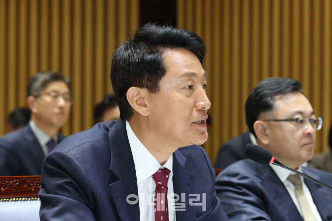 오세훈 서울시장이 지난달 20일 오전 서울 중구 서울시청에서 열린 국회 국토교통위원회의 서울시청에 대한 국정감사에서 의원 질의에 답하고 있다. (사진=이영훈 기자)